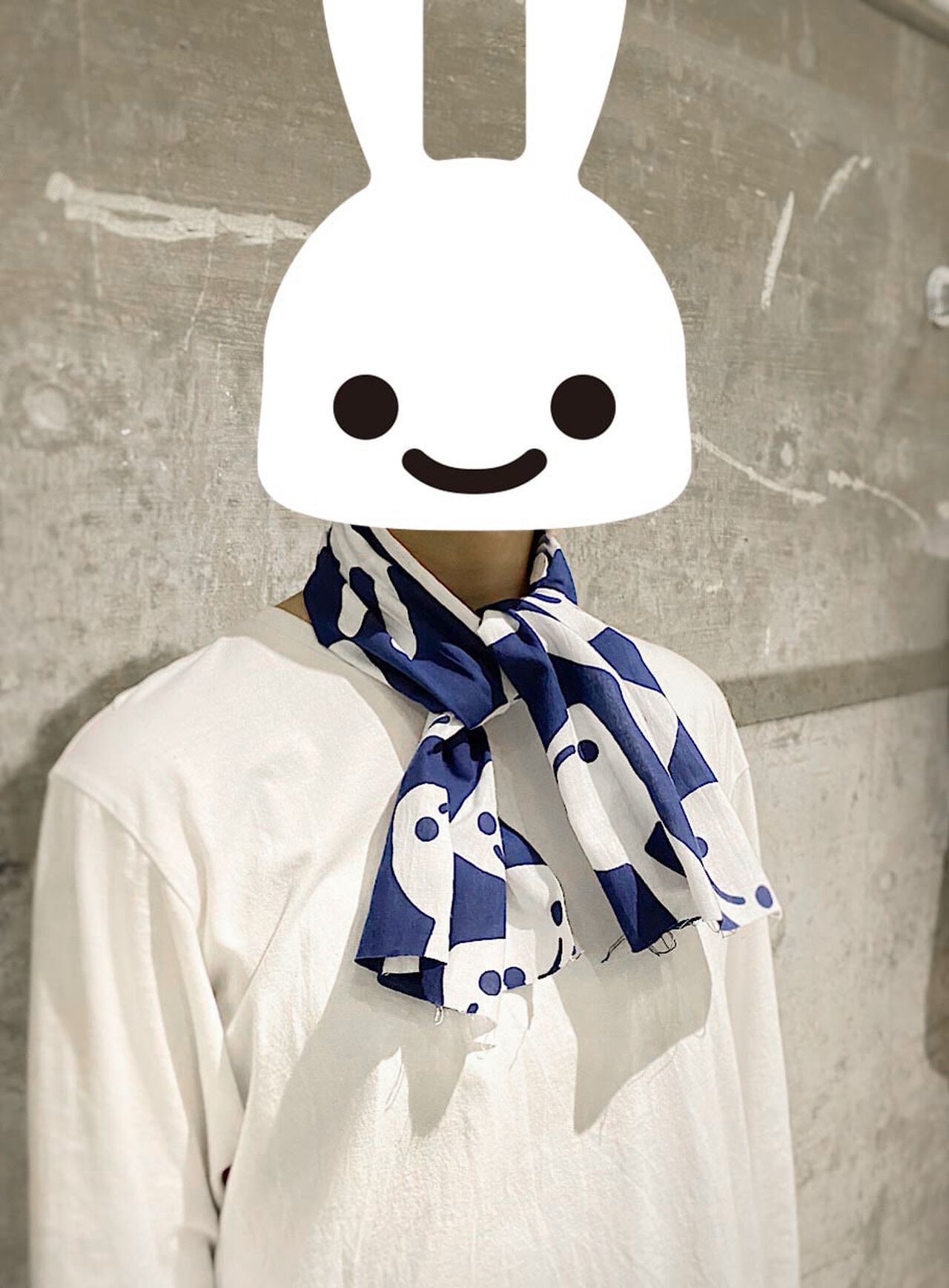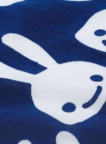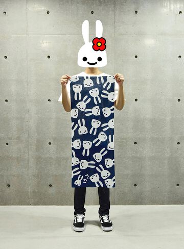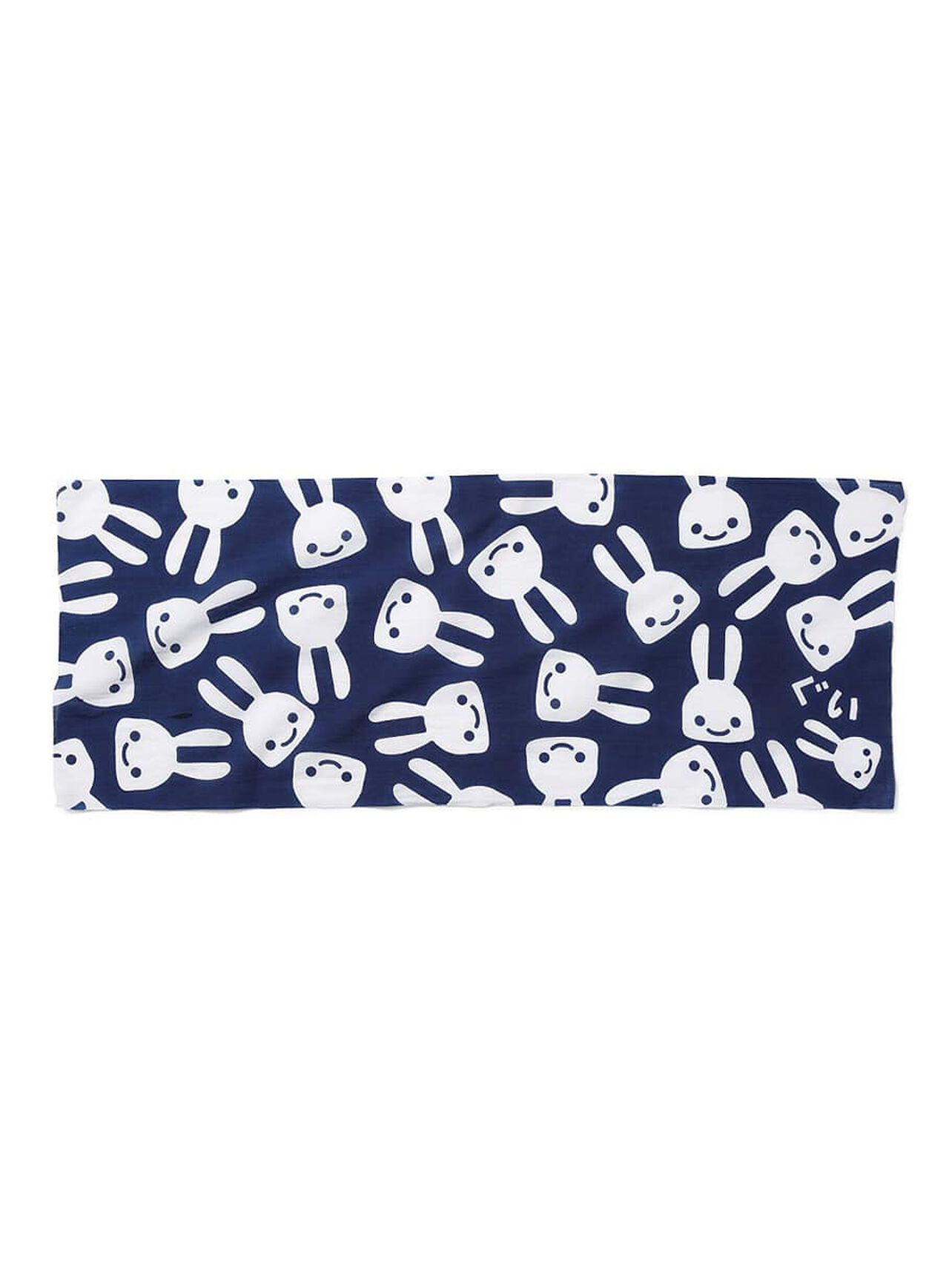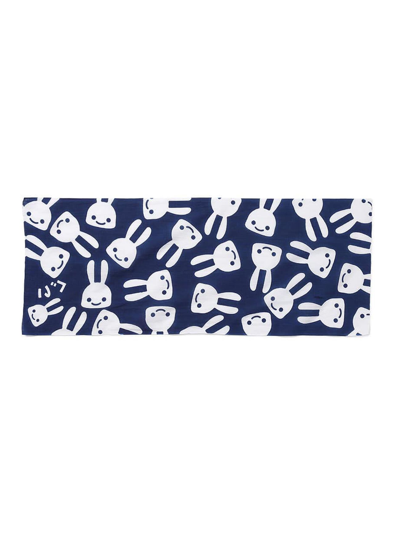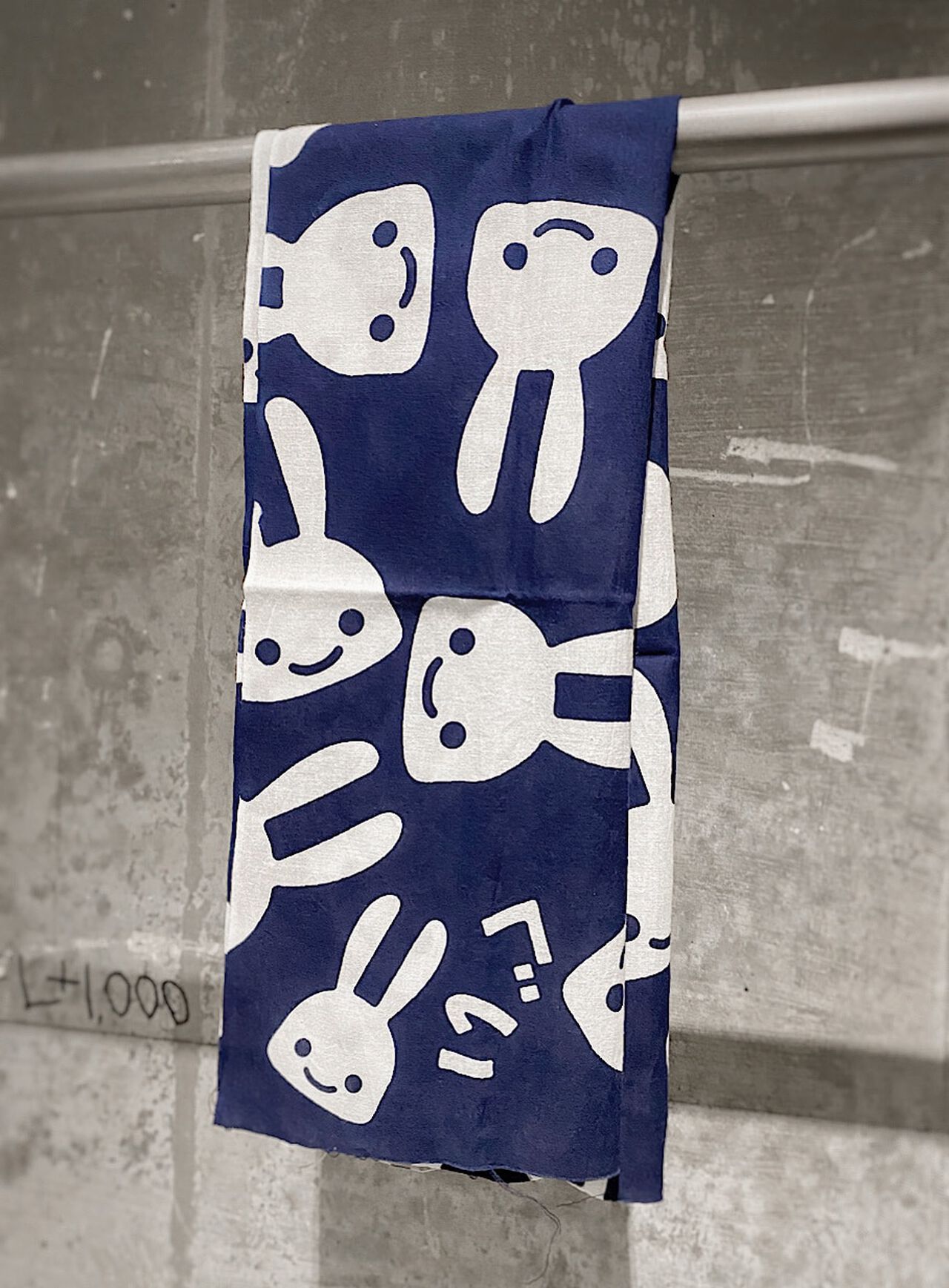 Tenugui hand towel with many rabbits. The texture of each piece differs from one another due to the blurring and smudging that occurs during the dyeing process.