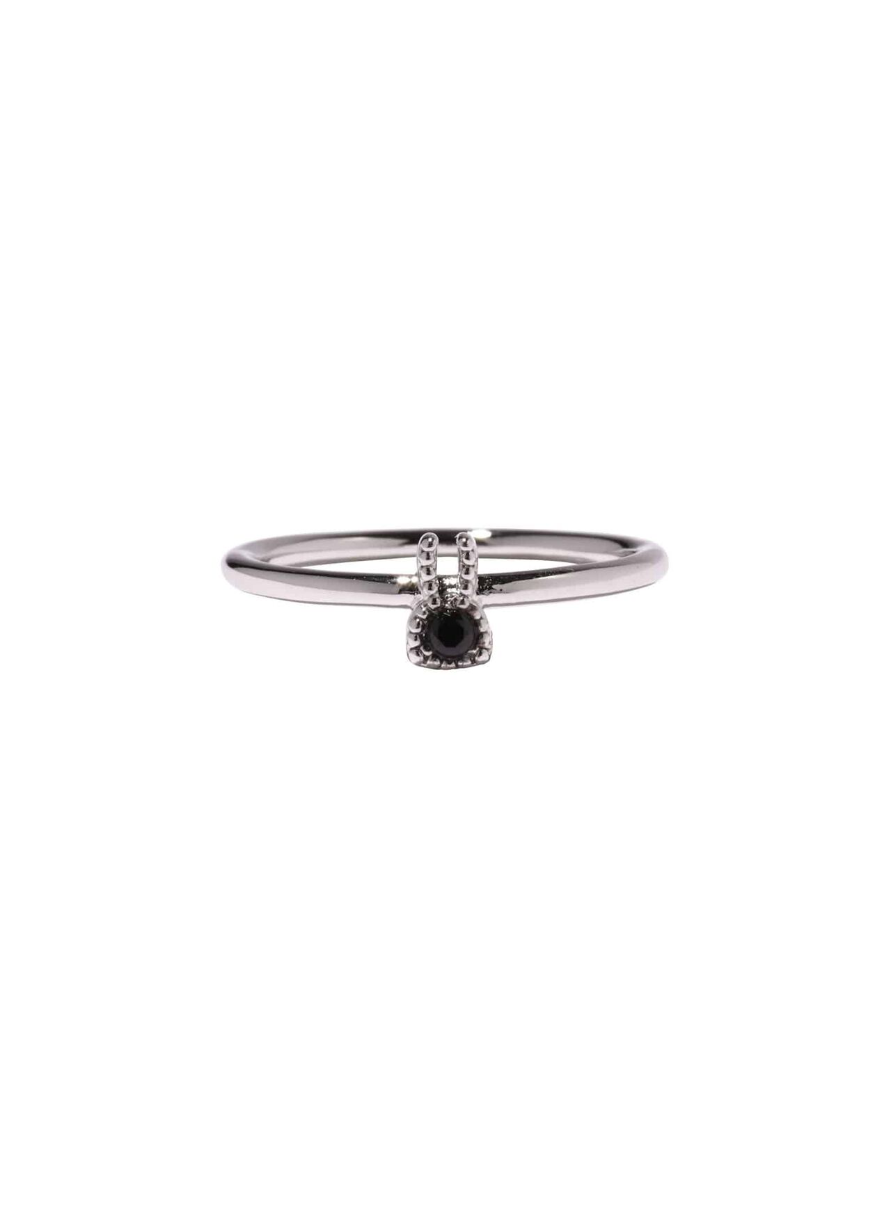 This ring is a rabbit with black spinel embedded in it. Black spinel is a symbol of "strong will" and is said to have a positive effect on its owner. Comes with a paper box with rabbit logo.