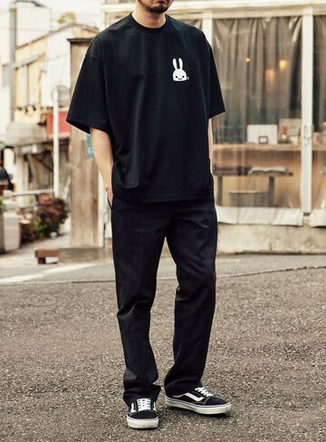 Big silhouette T-shirt made of degree-filled jersey. It has a color-coded binder from the neck to the shoulders, and the side lines have a slightly slanted front pattern. There is a tape between the back of the neck and the accent, but if it gets in the way, you can cut it off.