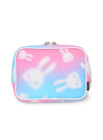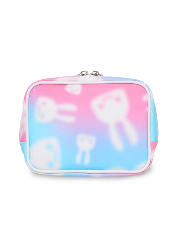 Pouch with a fluffy rabbit printed on it. The double zipper design has two compartments inside and is equipped with CSS (CUNE SOUND SYSTEM).
