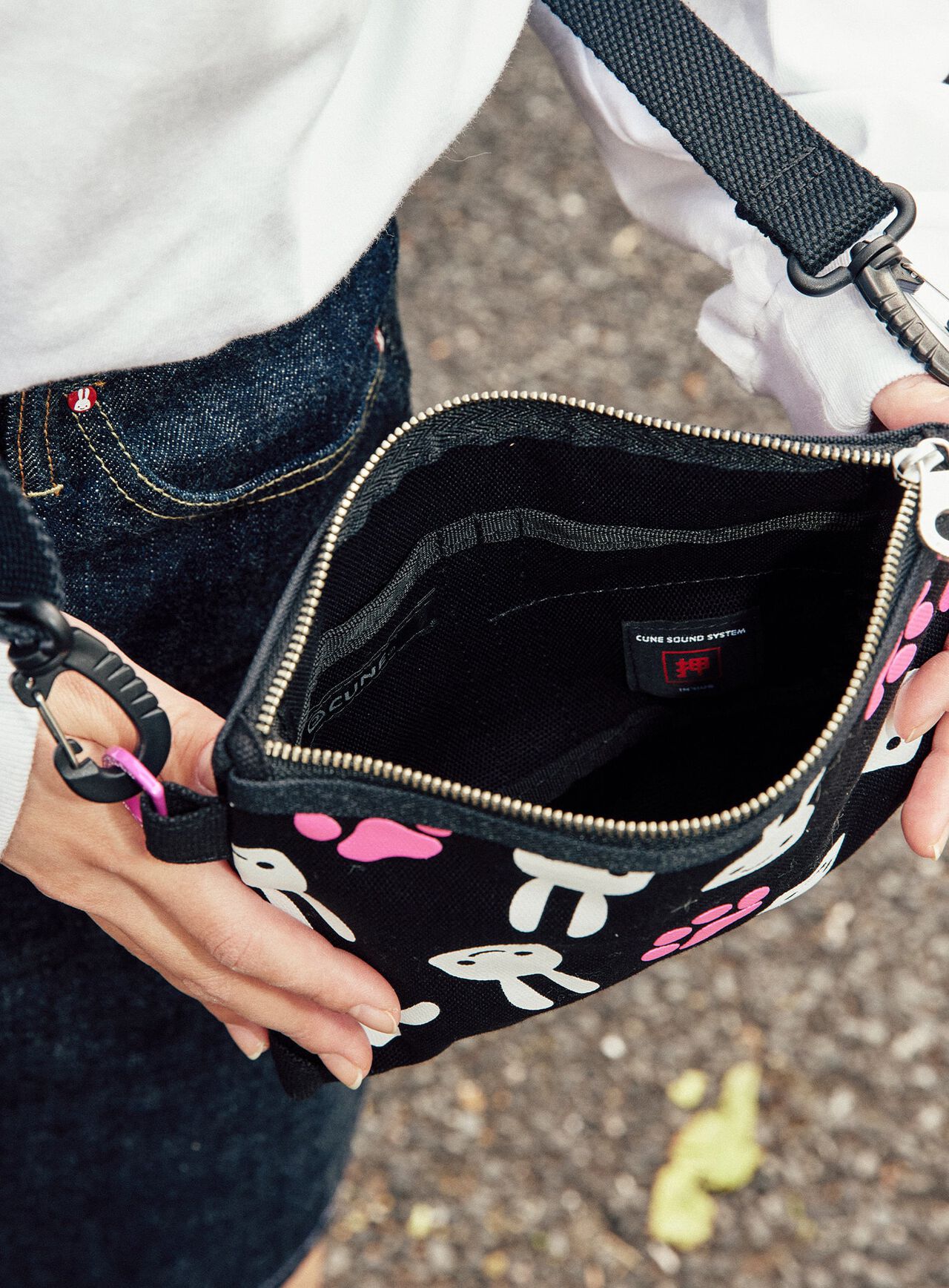 A shoulder pouch made of canvas with foam printed paw pads. Each paw paw paw is puffy. The shoulder is detachable, so it can also be used as a pouch. The inside has a furiashi pocket with CSS (CUNE SOUND SYSTEM), which is sewn in and cannot be taken out.