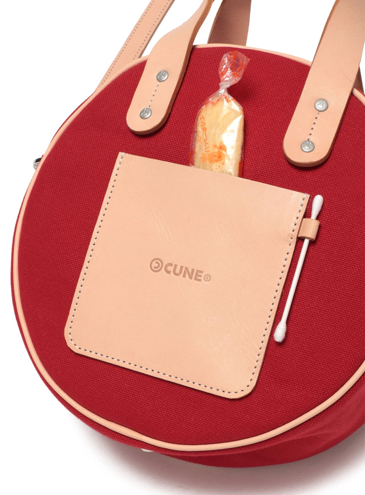 This 2-way bag is made of No. 6 canvas for the main body and cowhide for the handles, shoulders, and piping. The inside has one pocket with a zip and a pocket with CSS (CUNE SOUND SYSTEM) The CSS is sewn in and cannot be taken out. There are two meaningless bottom studs on the bottom.