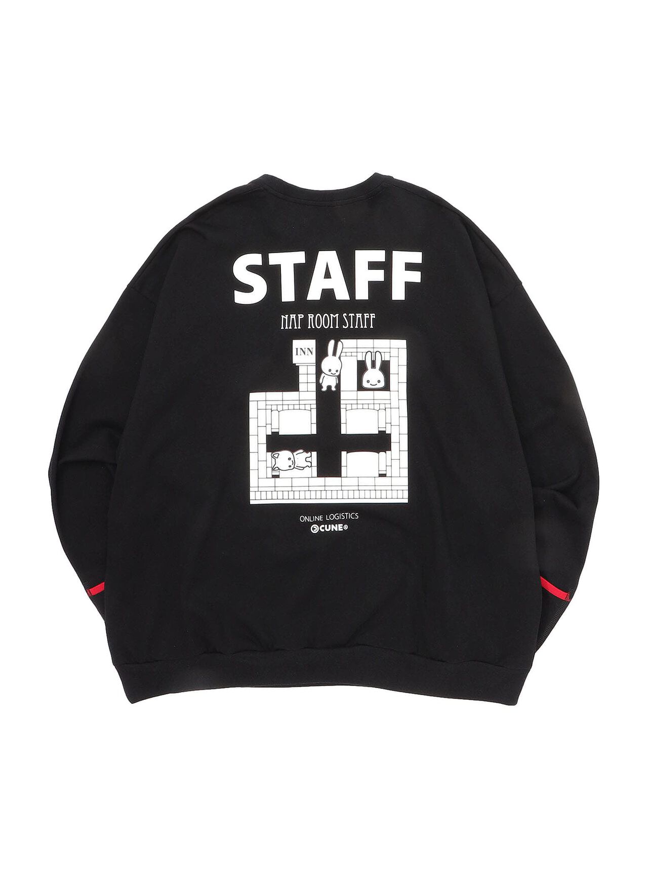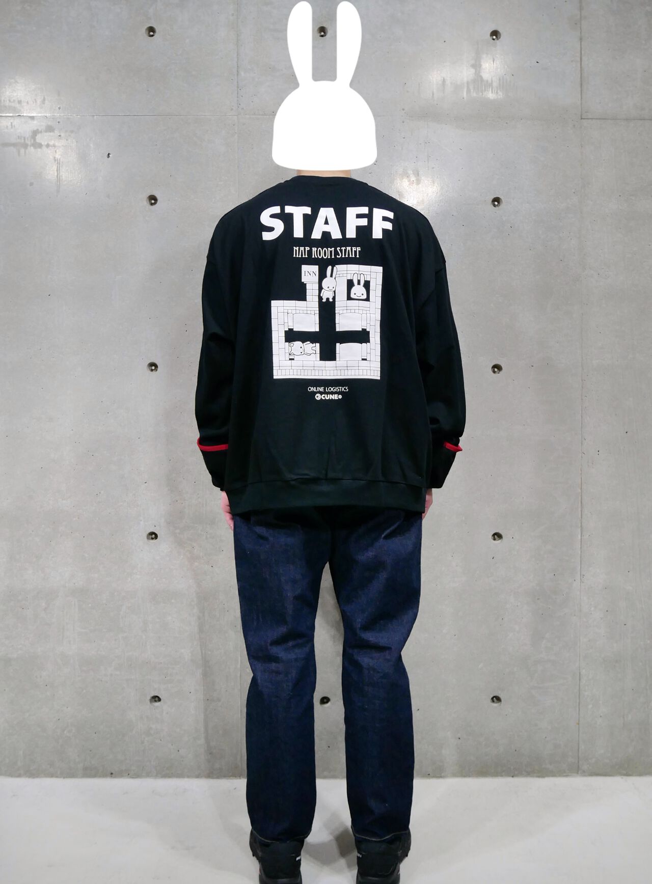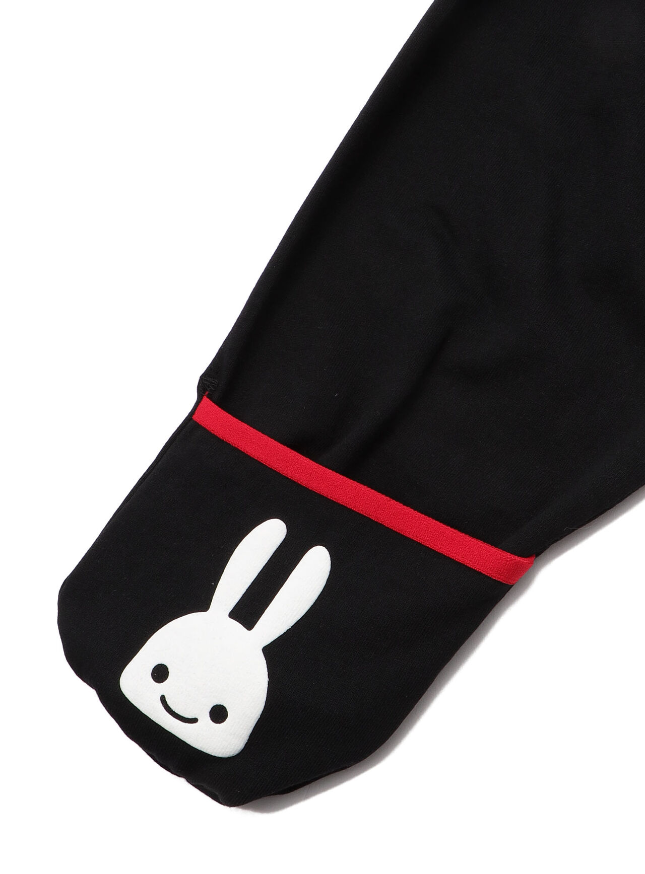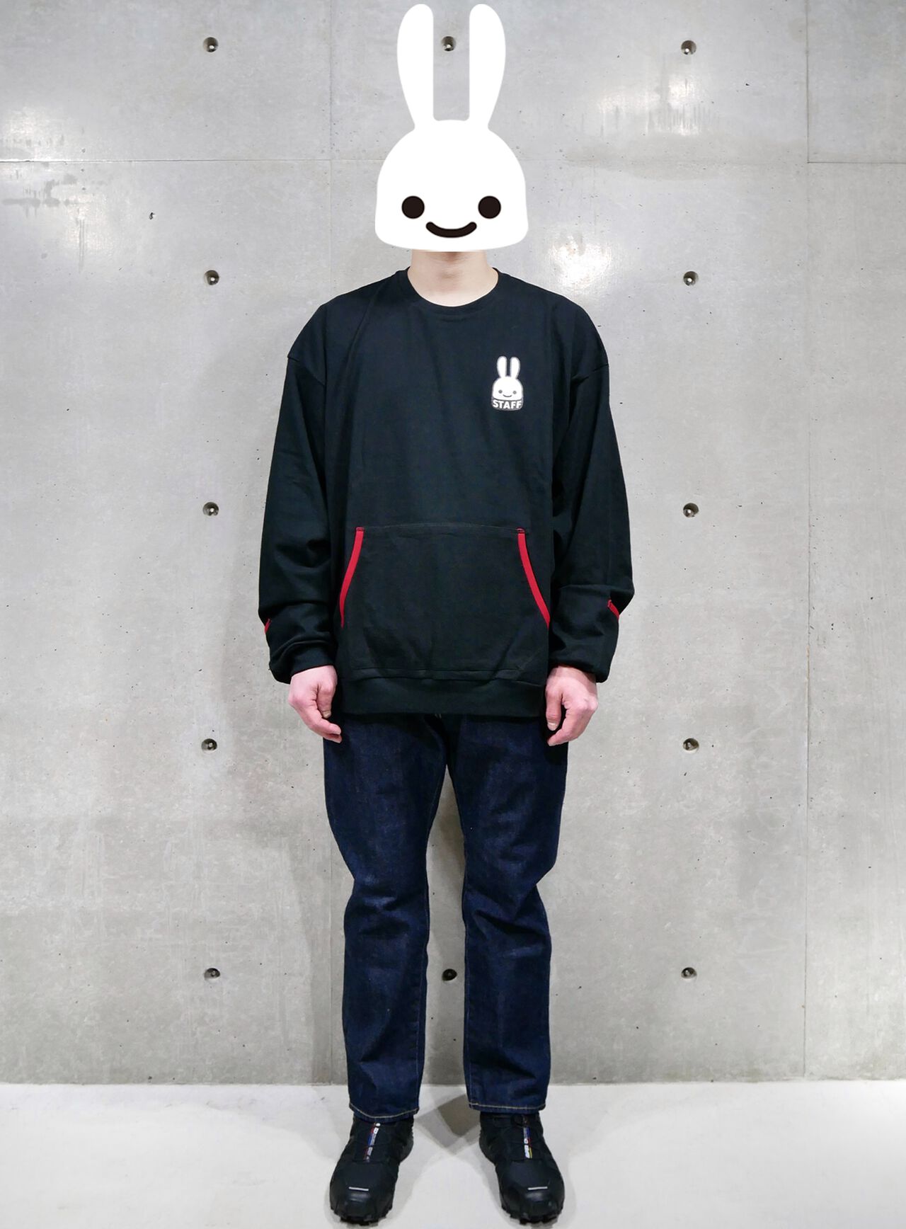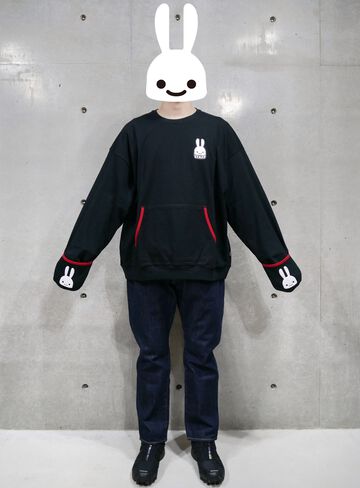 Hand-covered big cut and sewn exclusively for nap room staff. This is an online store exclusive model. It has a fairly large silhouette and is made of thick jersey fabric. The pockets on the cuffs can be turned over to make mittens. The mitten part has a foam print of a rabbit. There are darts on the body near the stomach that don't seem to make much sense. The cuff pockets, kangaroo pockets, and belly darts are sewn with a 3-needle lock.