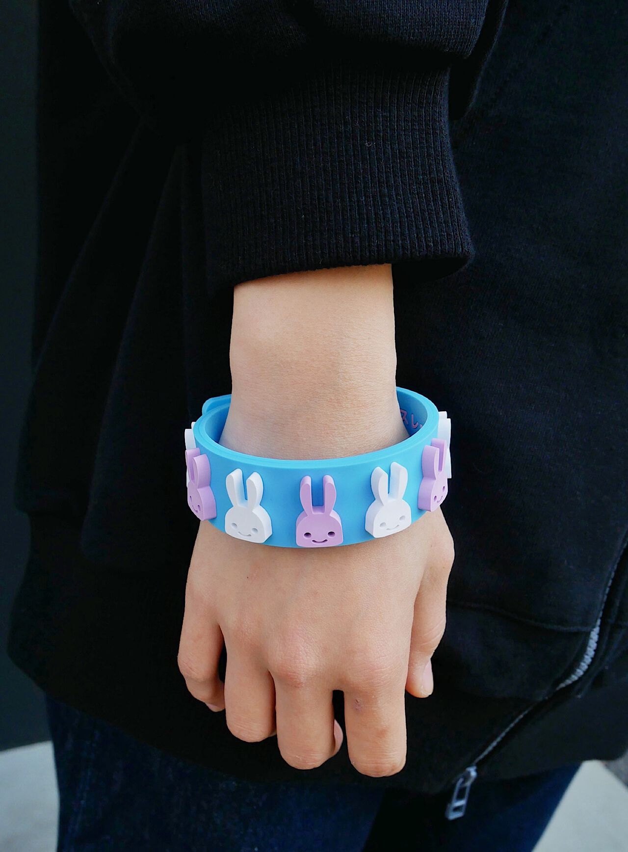 Bracelet made of rubber. The inside of the bracelet has "No doubt with the bracelet removed".