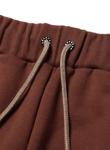 Sulkel pants made of soft, lined fabric. The silhouette is loose at the thighs and tapers down to the knees for ease of movement. The waist has elastic and ties for size adjustment.
