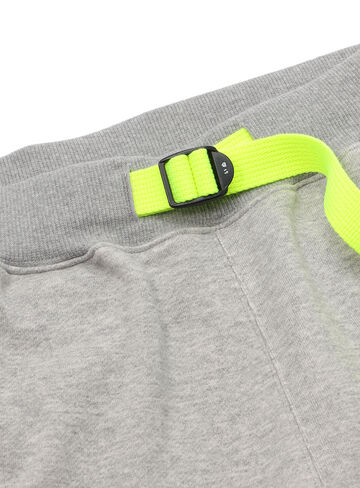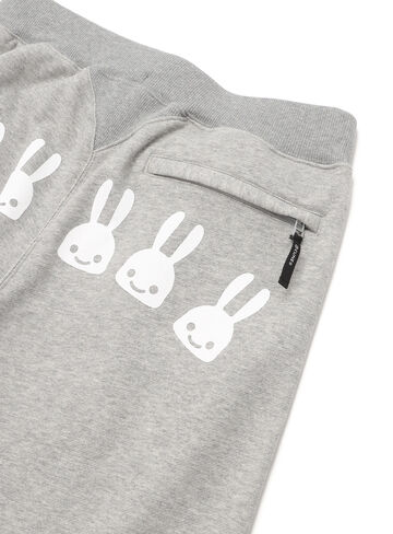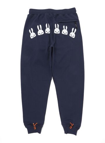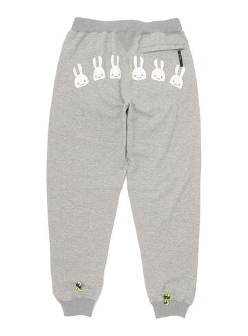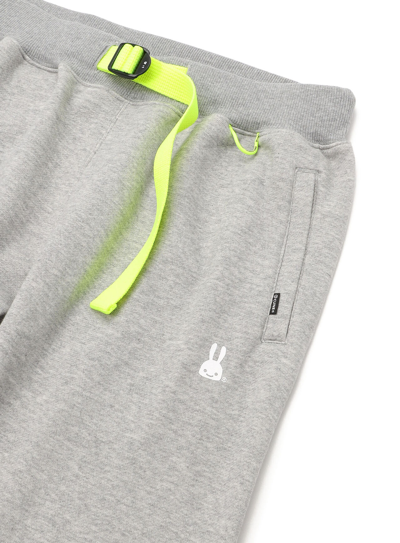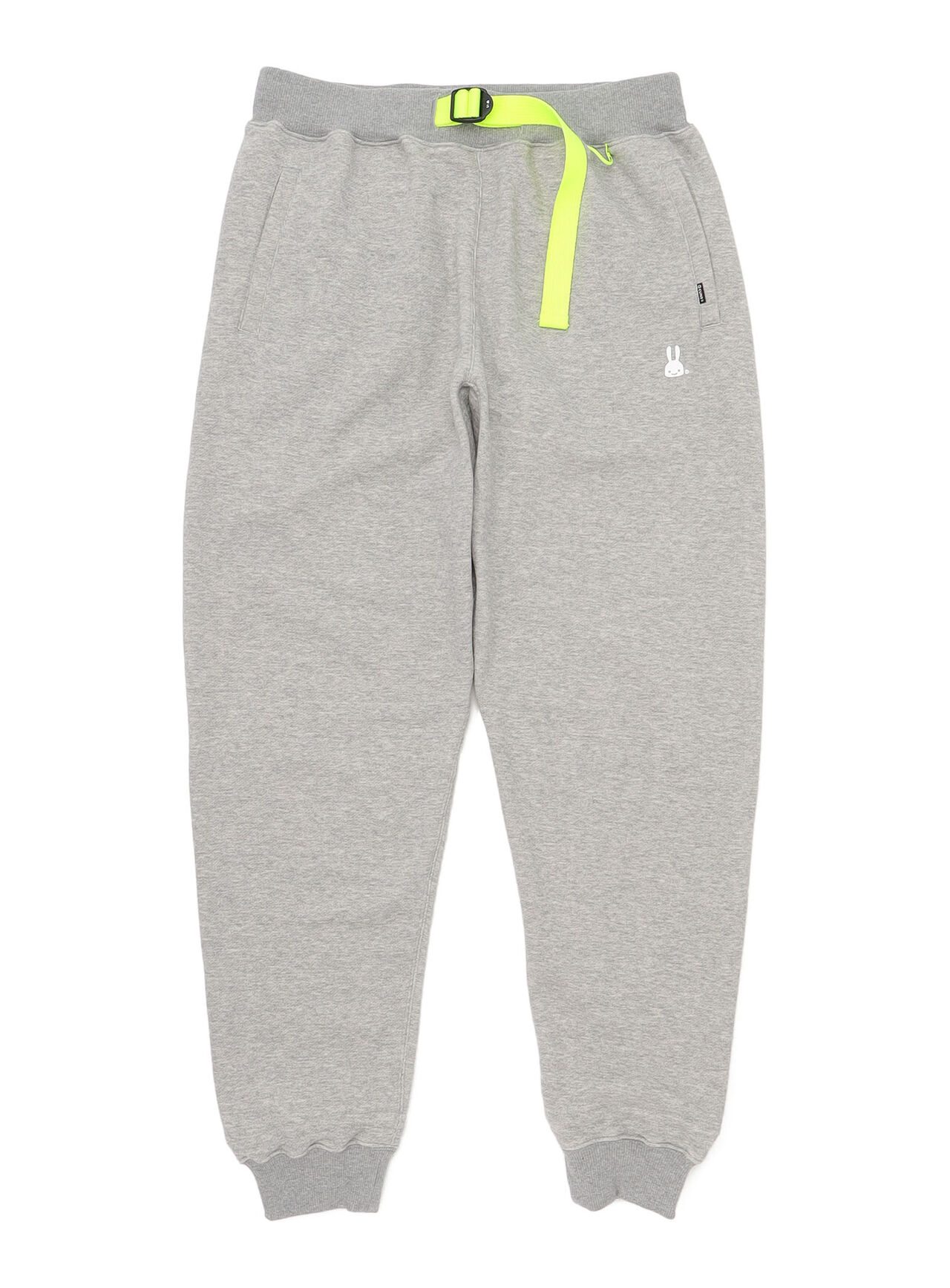 Sweatpants with a webbing belt at the waist. The elastic loops at the waist allow you to hook something light. The original elastic spindles are threaded through the hems, so you can change the silhouette a little by squeezing them. The waist is equipped with gussets, and the crotch has a diamond-shaped gusset. The backs of the knees have tards that don't seem to make much sense. The rear pockets are zippered and have original pulls.