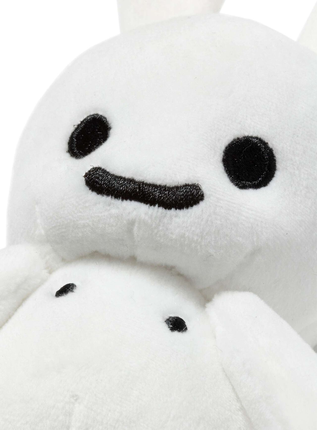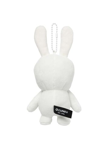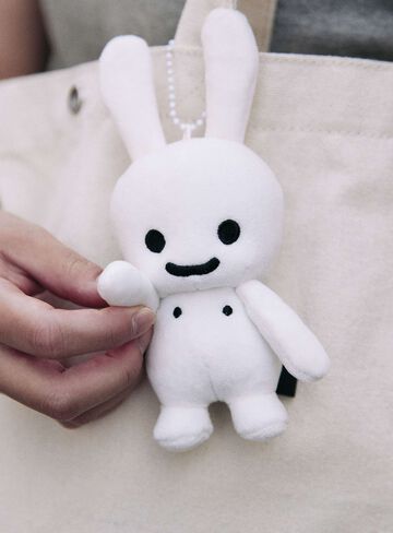 Stuffed bunny. It comes with a white ball chain and has a name on the buttocks.
