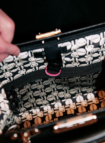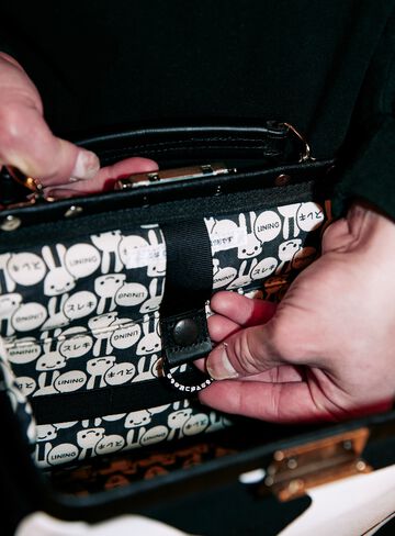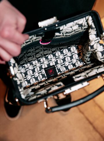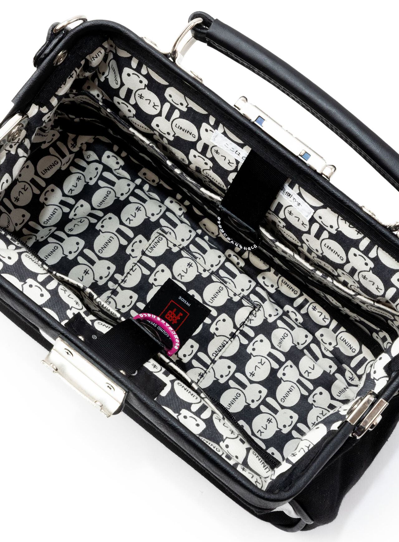 A doctor's bag with a rabbit printed on canvas material. The shoulder strap is detachable and can be used either as a shoulder strap or as a hand-held bag. There is a zippered compartment on the back for inserting and removing a smartphone, etc. It is equipped with CSS (CUNE SOUND SYSTEM), but CSS is sewn into the bag and cannot be removed. Please read the instruction manual before using the key.