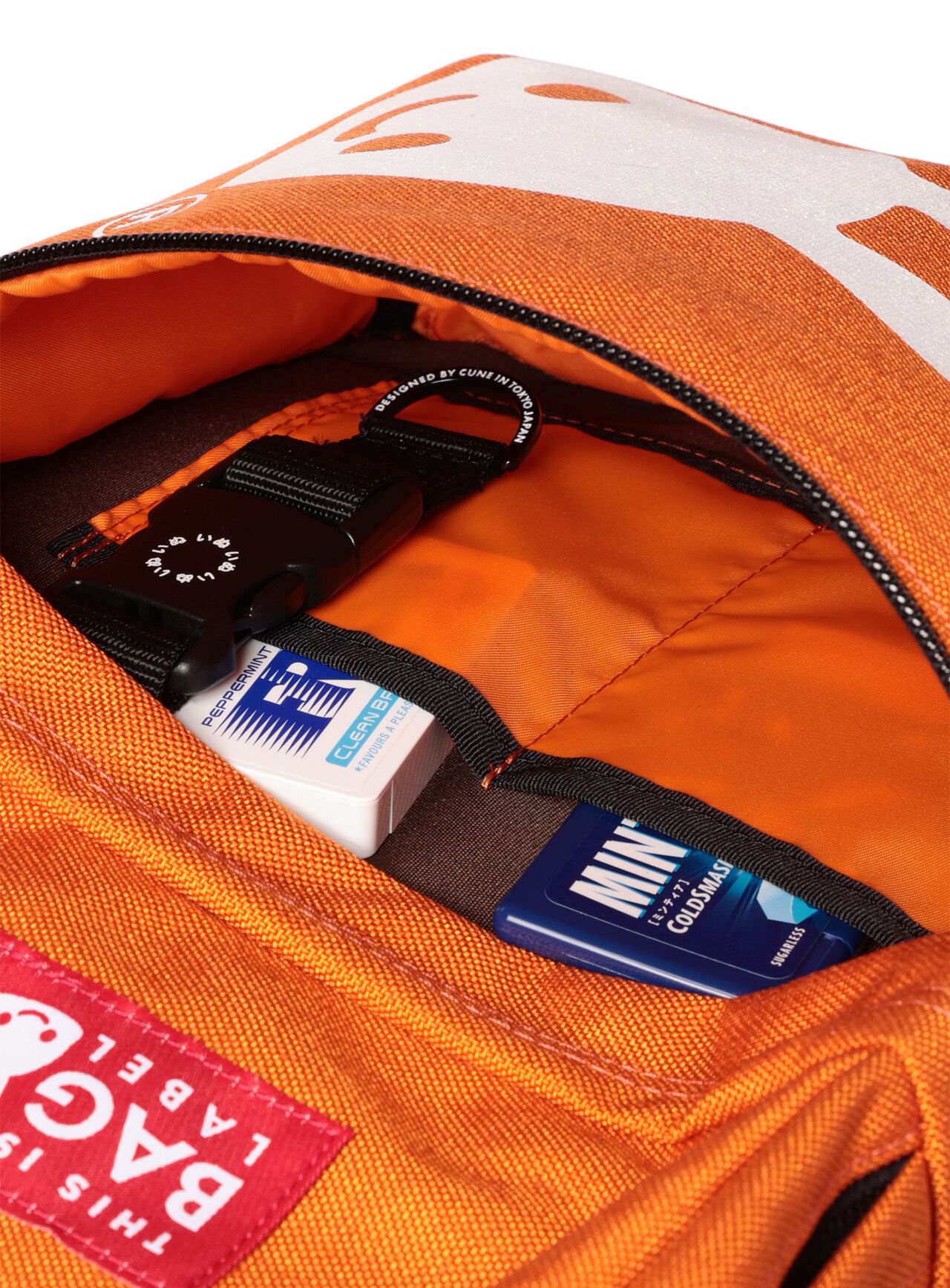 Shoulder bag made of cordura? shoulder bag made of Cordura? CSS (CUNE SOUND SYSTEM) is installed in the inside pocket of the main compartment; CSS is sewn in and cannot be taken out. The lower front compartment has a removable D-can with a buckle and an inside pocket.