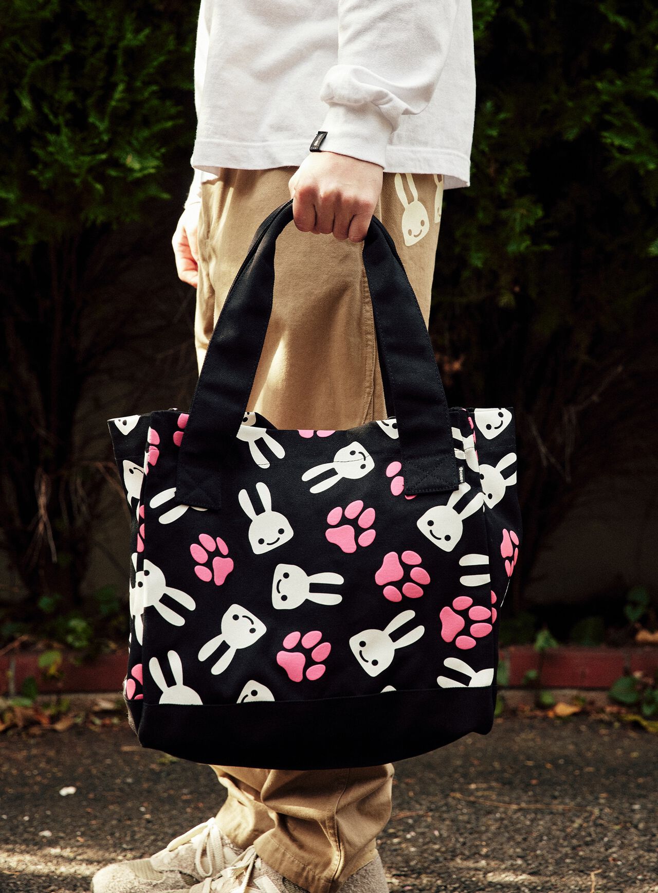 Canvas tote bag with foam printed paw pads. Each paw paw paw is puffy. It can be opened and closed with a magnetic button. Both sides of the inside have pockets with CSS (CUNE SOUND SYSTEM) installed in the furiashi pocket.