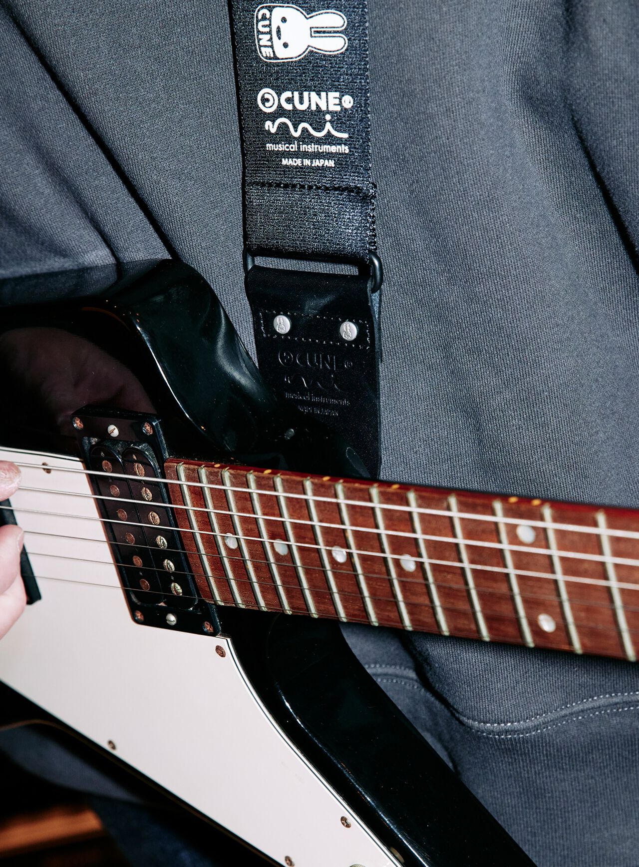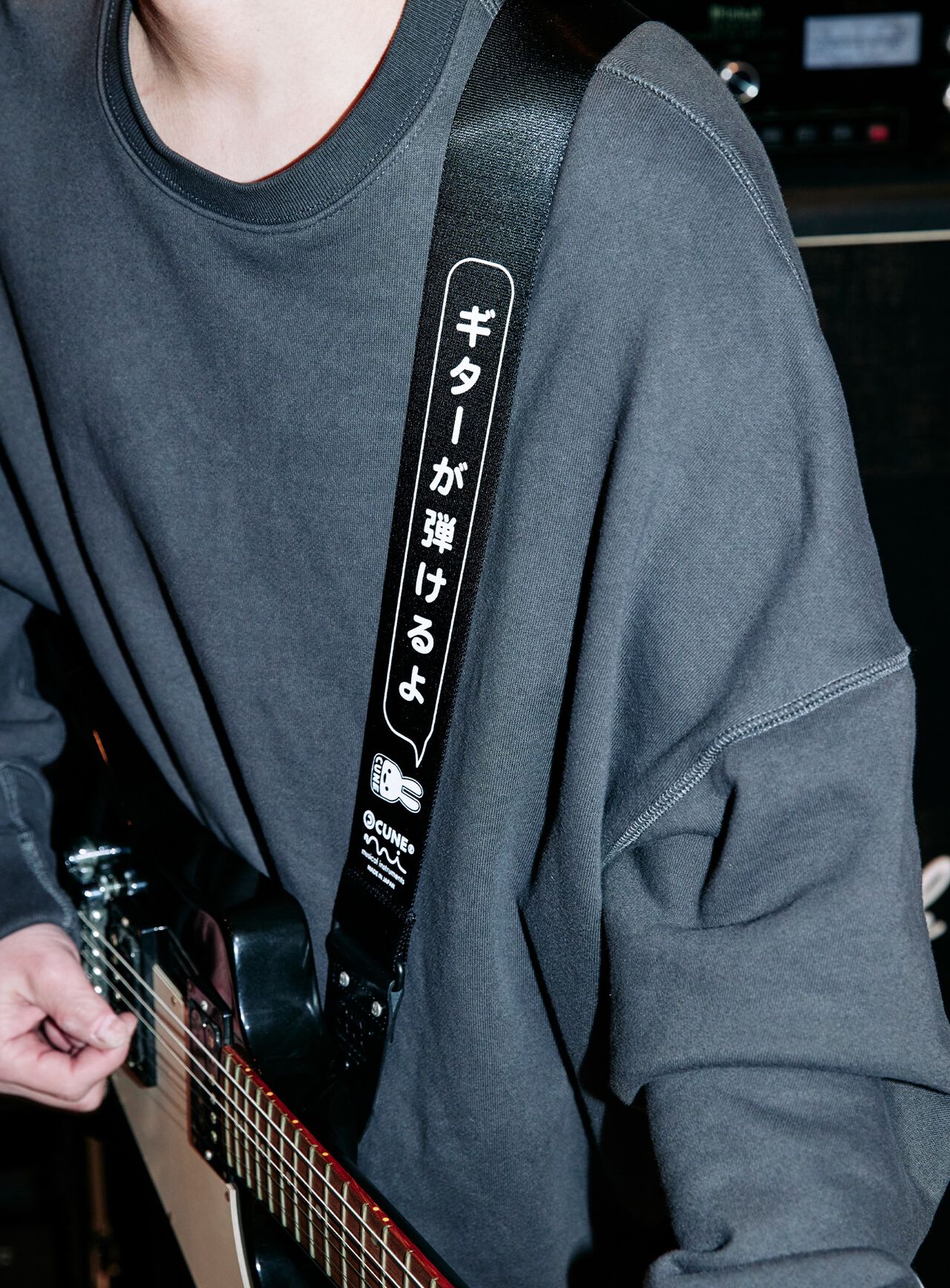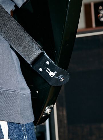 Guitar strap with various appeals. Original rivets and nonsensical tape.