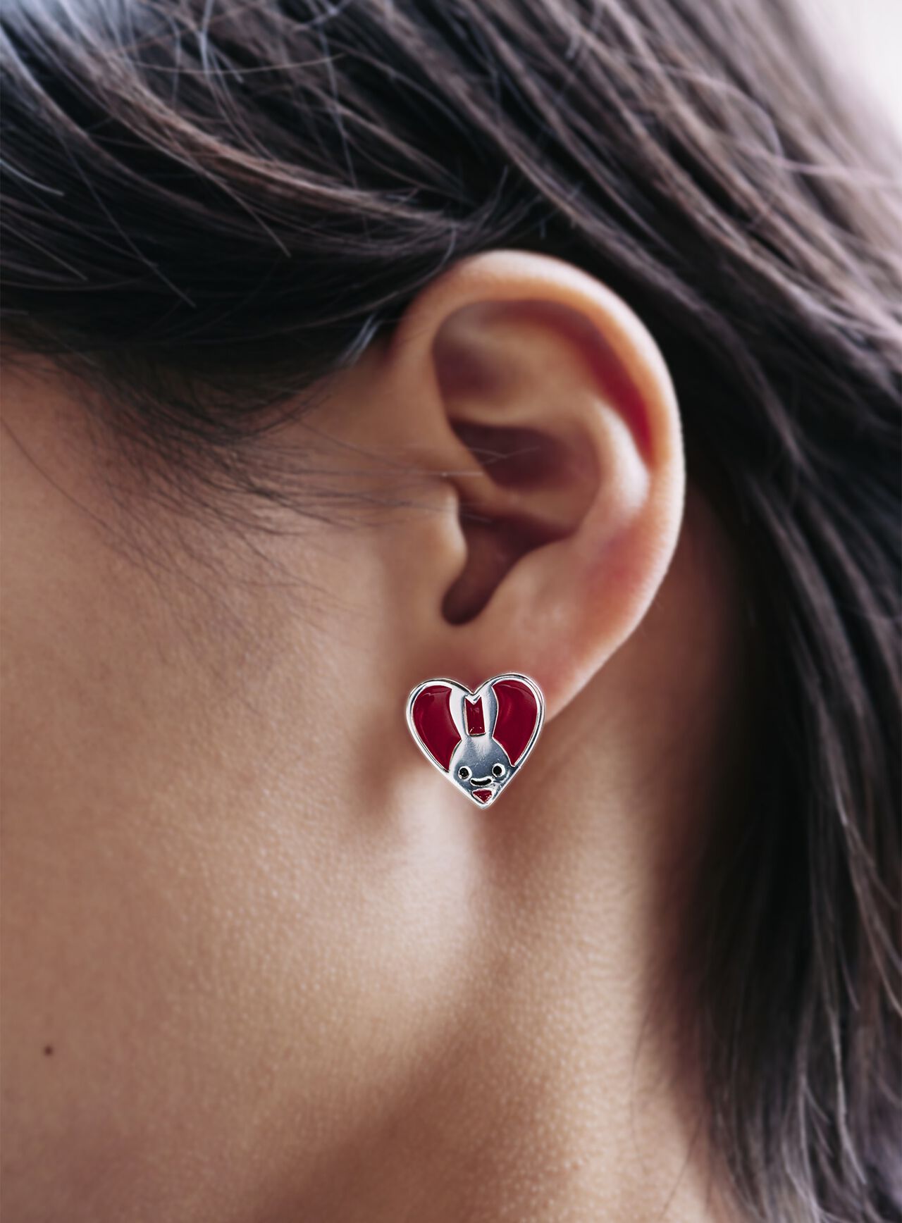 Heart motif earrings, set of 2. Comes with paper box with rabbit logo.