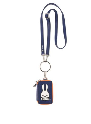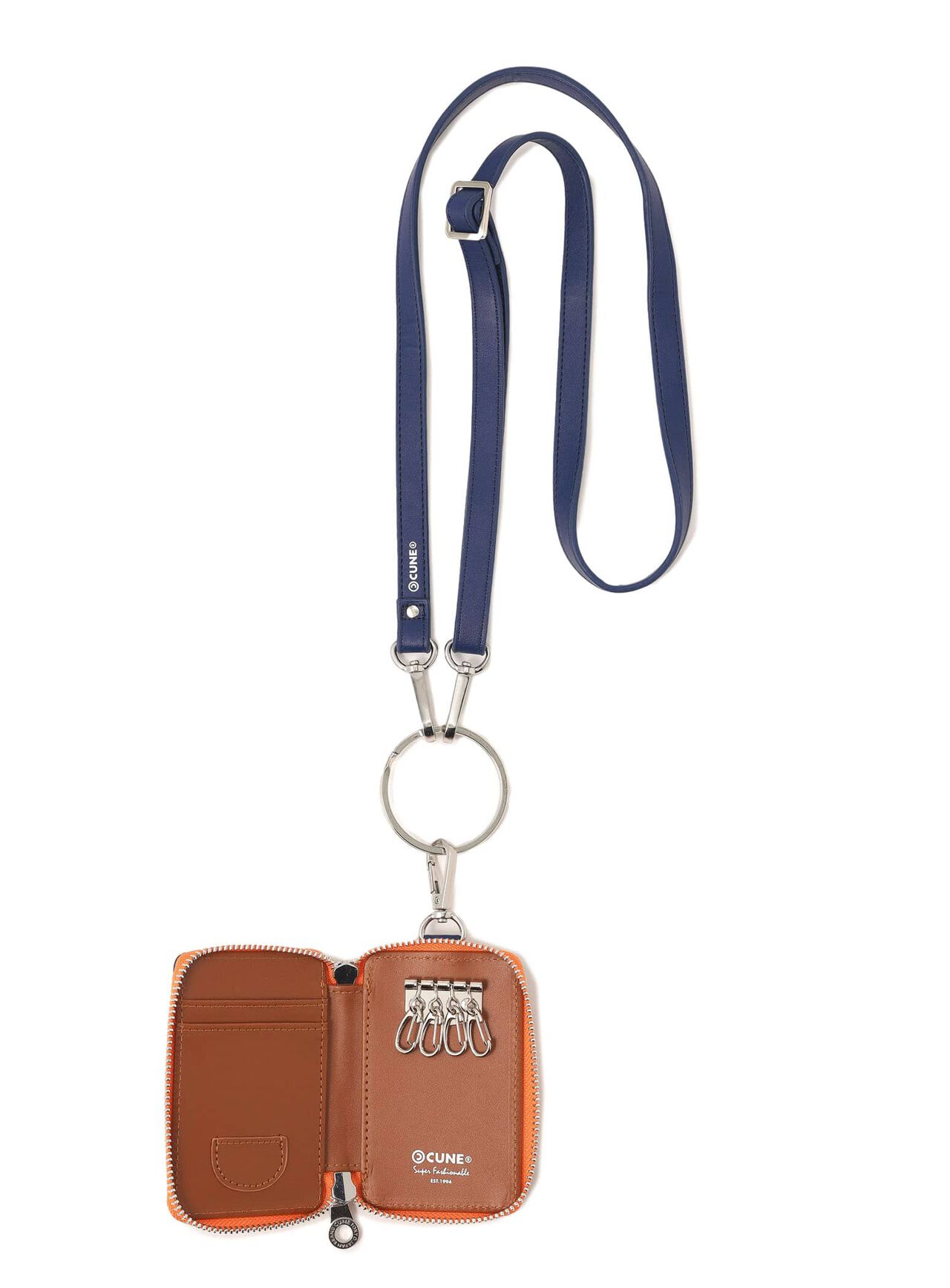 Shoulder pouch for keys and cards. The inside has two card slots, a pocket that just fits 10 yen, and four key hooks. There is also one card slot on the back and "URA" printed on the inside. Original slider is used.
