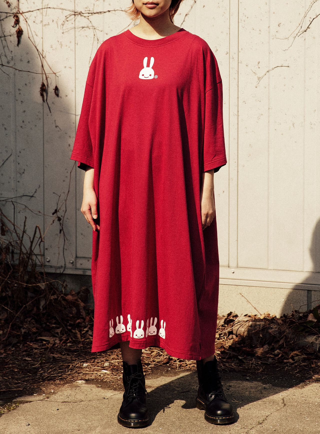 This wide jersey dress is made of soft jersey that feels good against the skin. The wide silhouette with drop shoulders makes it easy to wear.