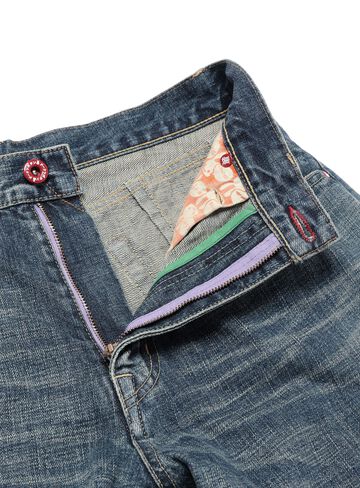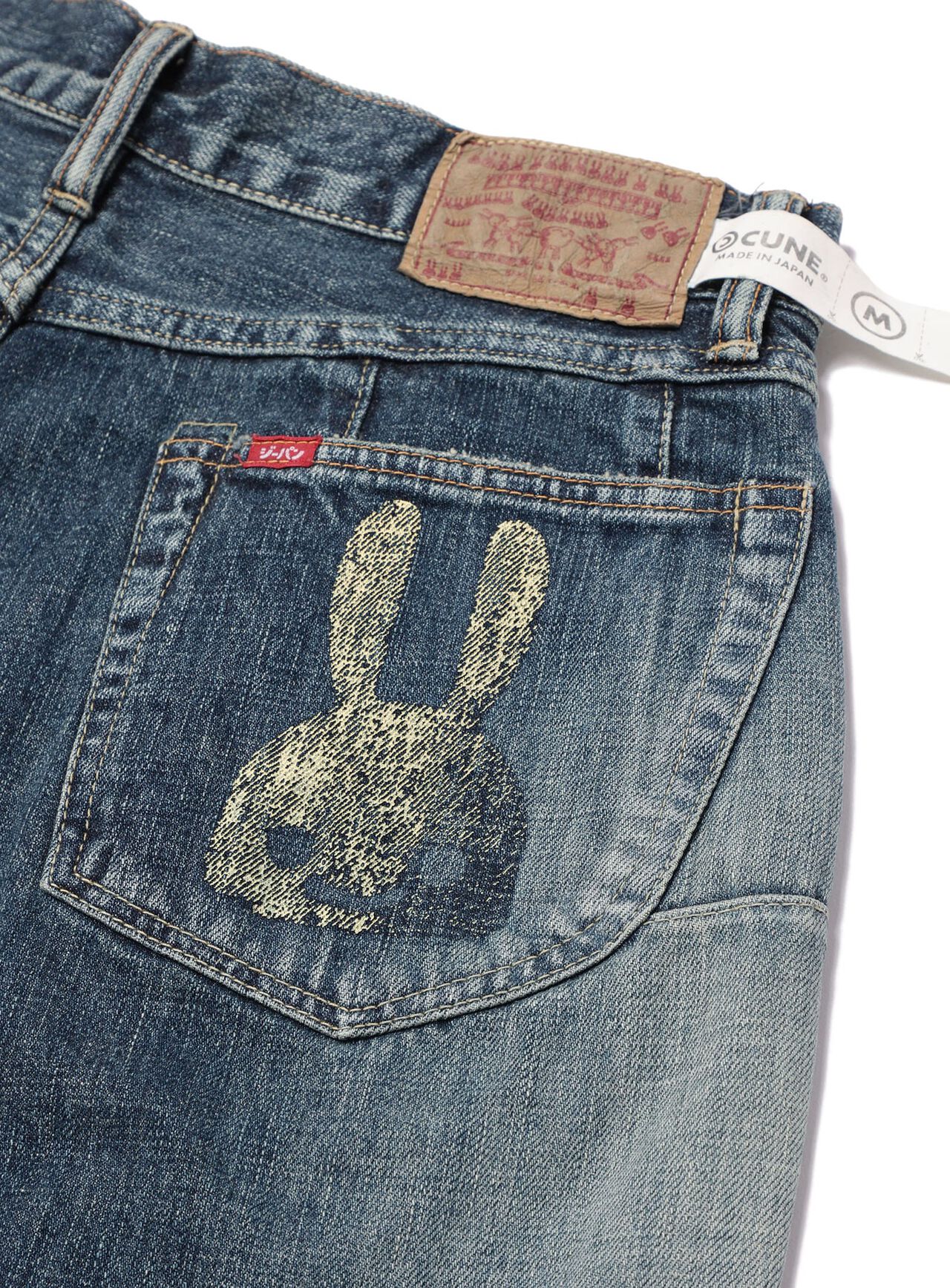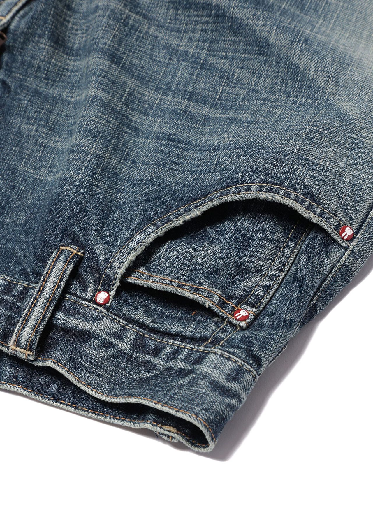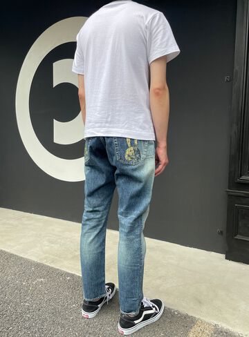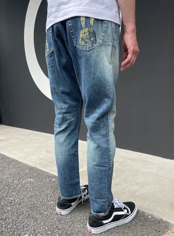 New model of jeans that make your hips look bigger - butt 5 years. the processing gives them the appearance of having been worn in for about 5 years, and the damage has been done. They have rabbit stamped zip pulls, painted neova buttons and rivets, printed lining, and paper patches. The back edge is partially wrapped with tape. The fabric is 13.5 oz. Japanese denim. It incorporates the sewing method of old jeans, and although it looks ordinary, it is surprisingly well made. They have a three-dimensional design with three darts to make the buttocks look nice and big. Based on the jeans , they are made surprisingly well. Due to the characteristics of indigo fabric, color fading and color migration may occur due to friction, wetting, and washing. Color transfer to prints may also occur. We cannot accept returns or exchanges due to the characteristics of the fabric, so please purchase with your understanding. The finished dimensions of the product are only a guide, and individual differences may occur due to the state of processing.