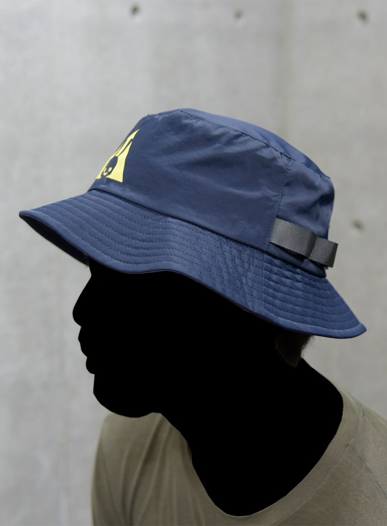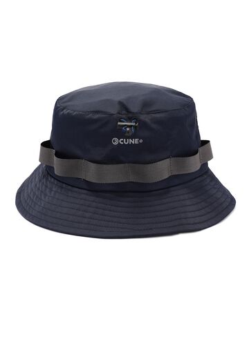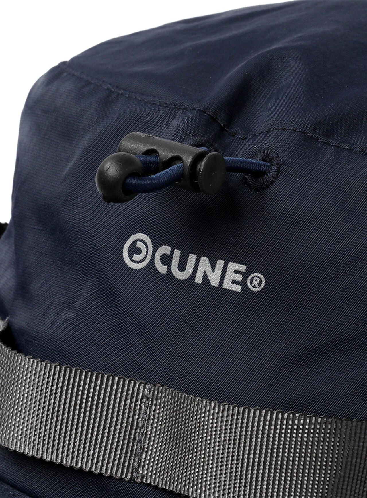 Bucket hat made of nylon material. A braid is attached to the back of the head, making it convenient to hang something from. The CUNE logo on the back of the head is reflectorized. The top of the hat has a drawcord that is not particularly meaningful, and it gets crumpled up when you squeeze it.
